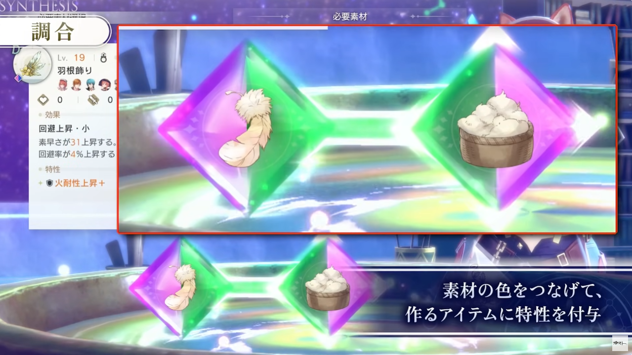 ・【調合】素材の持つ色「ギフトカラー」を繋げてアイテムを作成する「ギフトカラー調合」
