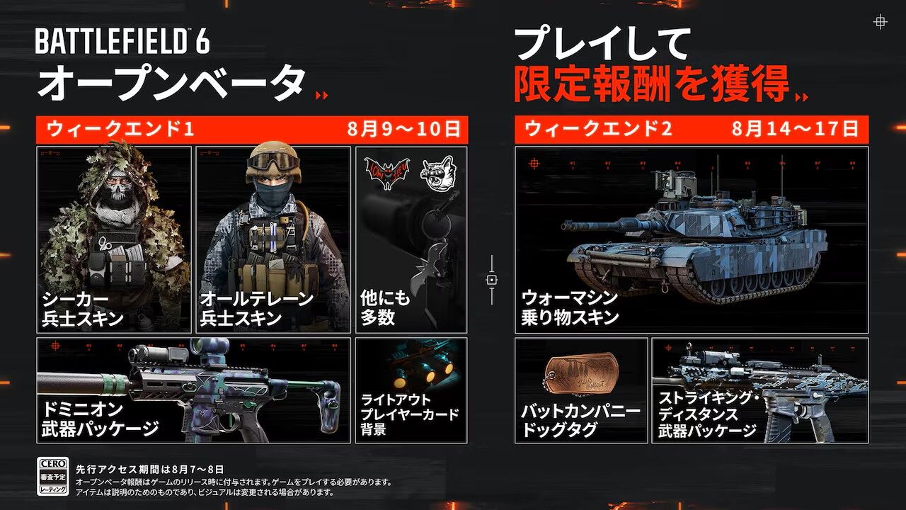 ▼「Battlefield 6」オープンベータ Twitch Drops
