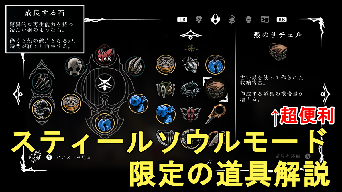 今回は、ホロウナイト シルクソングのスティールソウルモード限定の道具について解説します!