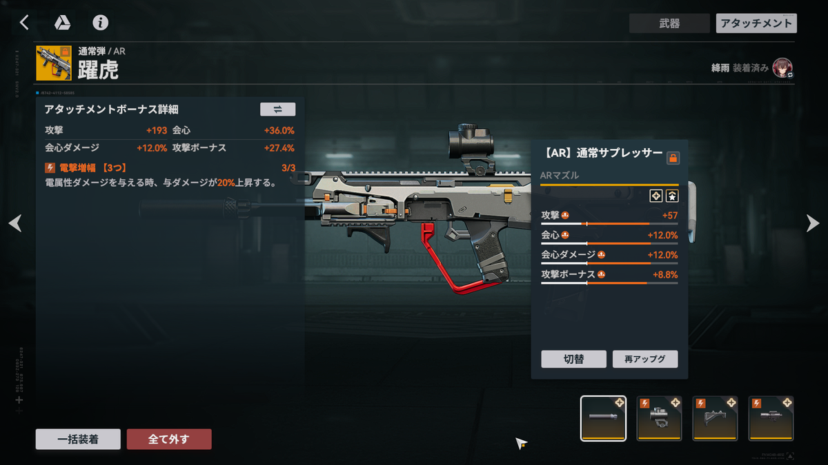 電属性キャラはアサルトライフルが多いのでアタッチメント堀りが楽で良いです。