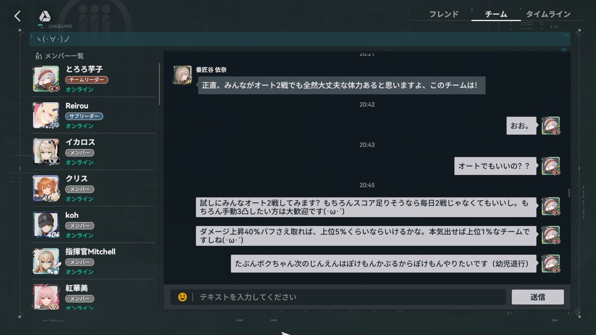 チームレベルが9あって皆アクティブで抜けがないっていうのはもうある意味で完成されていますよね。これ以上は誤差だよ。