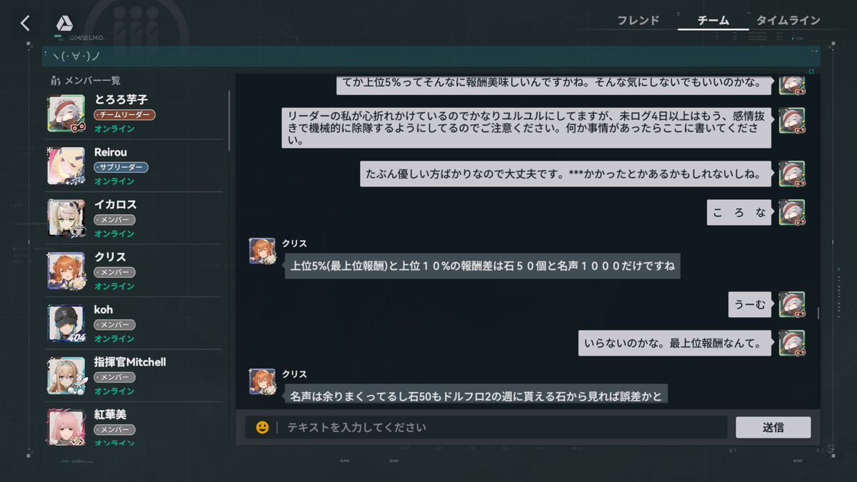 この感じだと遅かれ早かれチームというか、塵煙前線というコンテンツは崩壊するんじゃないかなと感じています。んで繰り返しますがこれエンドコンテンツですからね。