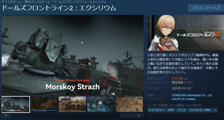 ドルフロ2のsteamの最近のレビューがやや不評なんですよね。中国や海外からのレビューも不評が多い。運営の対応が悪いらしく、ここから改善される可能性は低そう(なんか一時期圧倒的不評だったらしい…)。